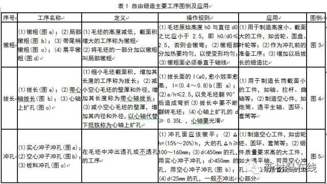 自由锻造的基本工序:镦粗、拔长、冲孔、弯曲、切割、扭转、错移及锻接等,而实际生产中最常用的是镦粗、拔长、冲孔这三种工序。